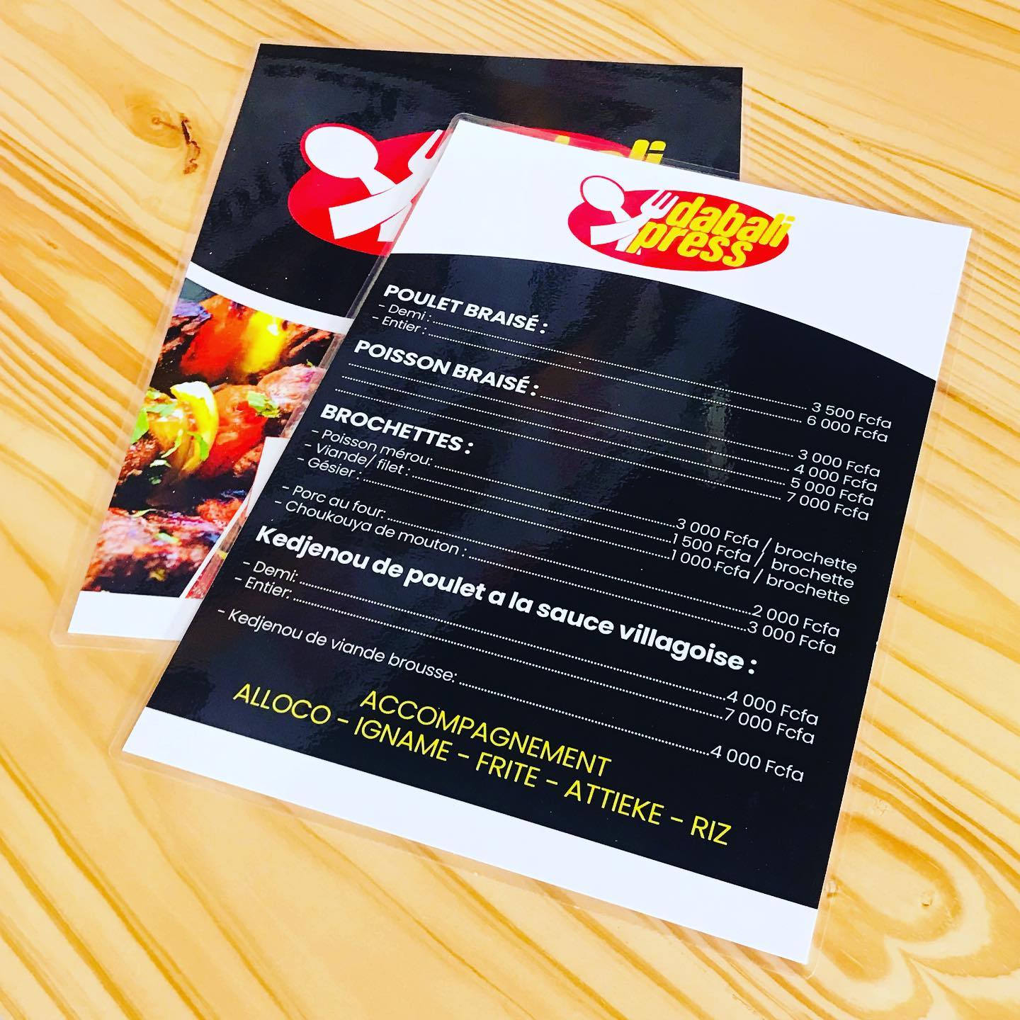 Valorisez votre établissement avec une carte de menu personnalisée et de qualité. Pour un petit prix, découvrez nos nombreuses options d’impression. Vous pouvez choisir le papier texturé Rives Vergé ou les finitions métalliques (argent ou or). Sélectionnez également des dimensions sur mesure ou standards. Enfin, optez pour le vernis sélectif ou la dorure à chaud afin d’obtenir une carte de menu véritablement unique.